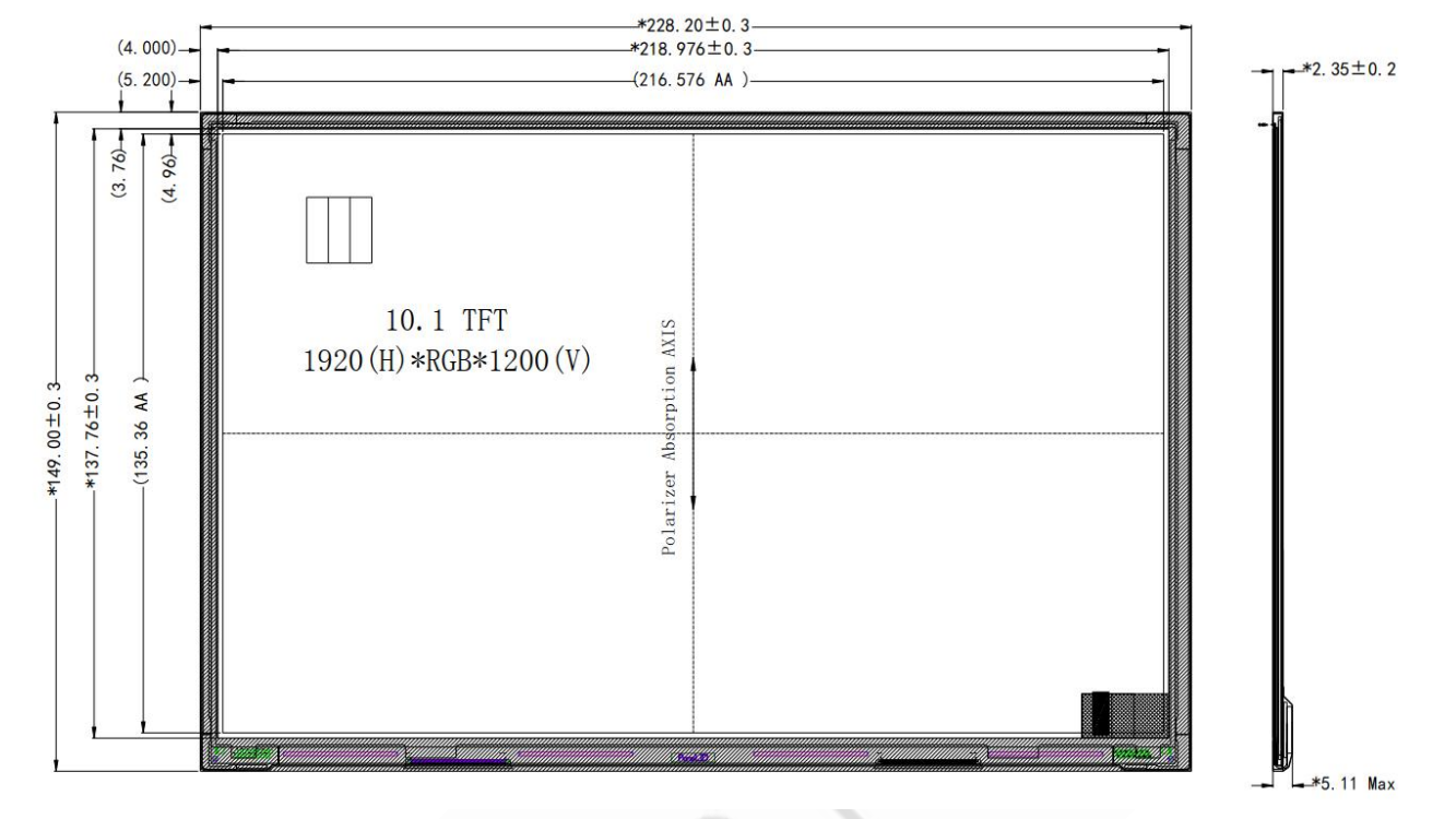 228.2x149x2.35 | 10.1 | 10.1 | 216.576x135.36 | IPS全視角 | 1000cd/m2 | FFC-30 pin | eDP | 防靜電ESD 8KV | -20~70℃ | +3.3 V |